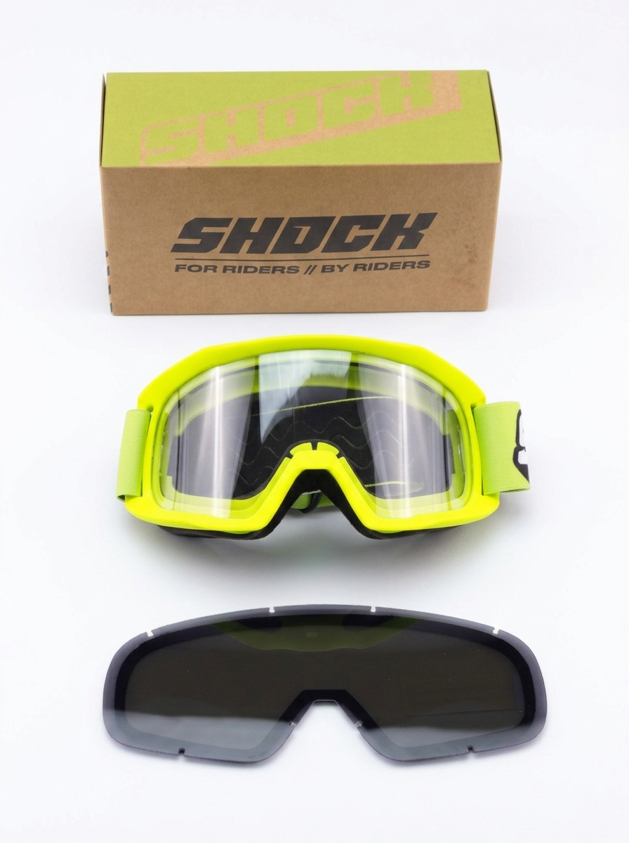 Кроссовые очки (маска) SHOCK Dual Lens Yellow — надёжная защита глаз для мотокросса, эндуро и активной езды по бездорожью. Двойная линза эффективно снижает запотевание и обеспечивает чёткий обзор при перепадах температуры и высокой влажности.